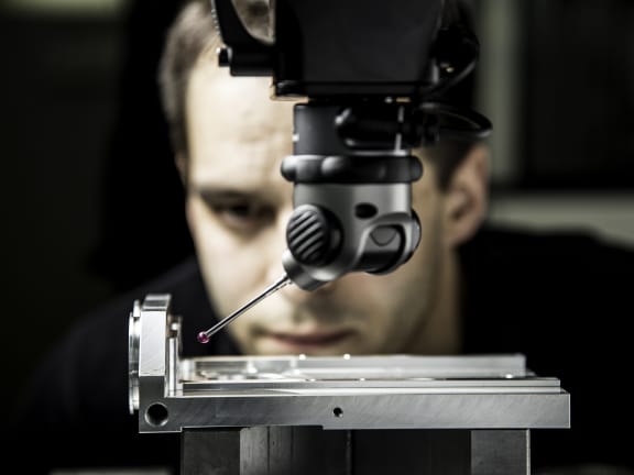 Viele Metallspäne müssen fallen, bevor die Einzelteile und Kleinserien aus Metall ihre Form erhalten und keine Spur von den vorgegeben Maßen abweichen. Schließlich handelt es sich bei den Produkten, die die Mitarbeiter im Werk in Bartholomä fertigen um Präzisionsteile von TLM-Maschinen von Schubert, die bei der späteren Montage in Crailsheim perfekt ineinandergreifen müssen.
