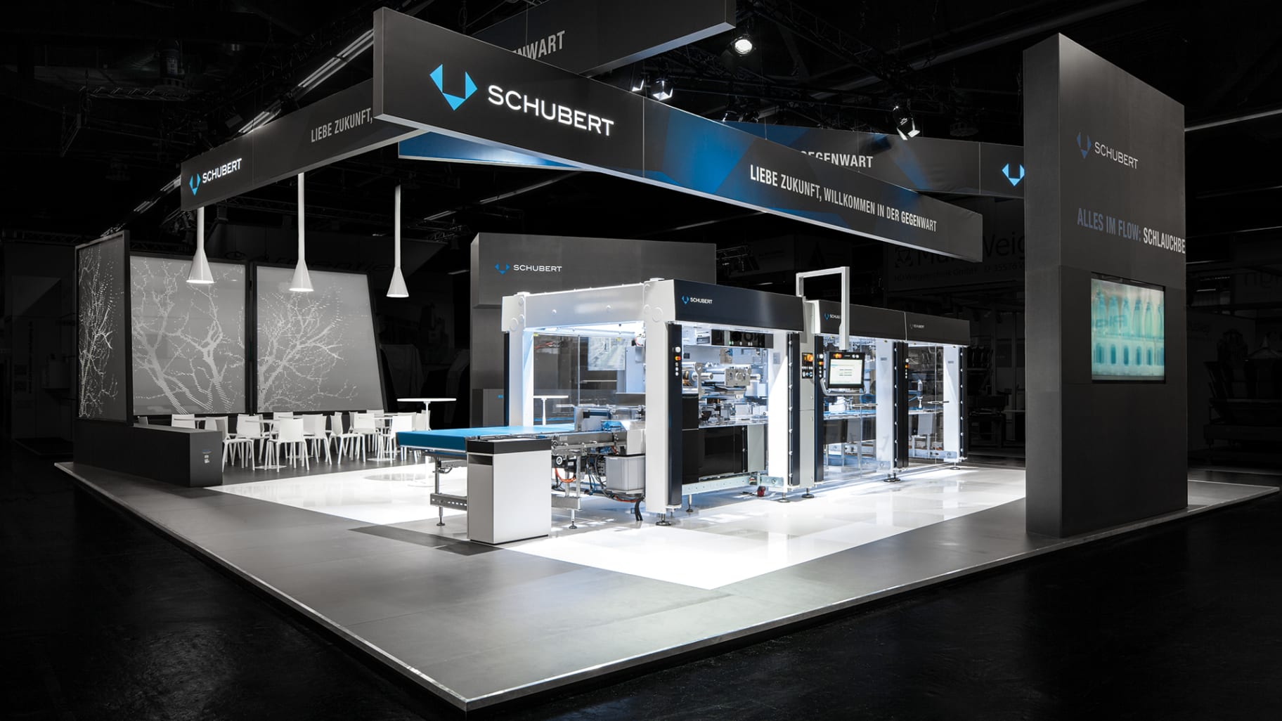 Das prämierte Messekonzept entwickelte Ruess Campaign X für Schubert nach Präzisierung der Markendefinition und Überarbeitung der visuellen Erscheinung der Marke. Das Ziel war, die technologisch führenden und fast magischen Verpackungsmaschinen spannungsvoll zu inszenieren. Vielfältige diagonale Linien, die die Dynamik und Zukunftsorientierung der Marke unterstreichen, dominieren die Messepräsenz. Vor dem überwiegend in dunklen Grau- und Schwarztönen gehaltenen Messestand erscheinen die von innen leuchtenden Maschinen als magische Lösung aus der Zukunft. Alle Elemente inklusive der Bodenteile sind demontierbar und können für verschiedene Grundrisse flexibel eingesetzt werden. Auf den internationalen Fachmessen der Verpackungsbranche in Nürnberg, Paris und Chicago im Herbst 2016 führte der neugestaltete Messeauftritt zu einer 20 Prozent höheren Zahl an interessierten Besuchern.